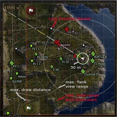Миникарта является неотъемлемой частью игры, с ее помощью можно очень хорошо ориентироваться в бою. В самом начале развития игры она отображала только иконки танков, но с обновлениям 0.9.14.1 в игру была введена новая умная миникарта, которая была взята из XVM. Но даже после этого спрос на сторонние моды мини-карты не упал, ведь внутриигровая ее версия включала в себя не все нужные функции для успешной и комфортной игры. |