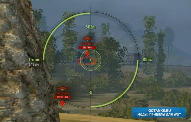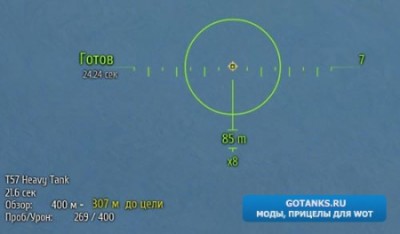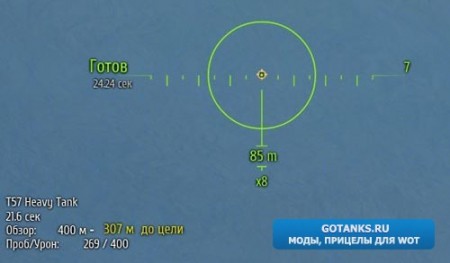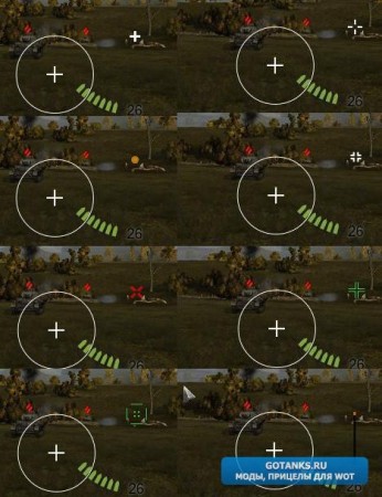 Данный вид прицела для WoT идеально подходит для любителей маленьких прицелов. Отличительной особенностью является то, что она удобна не только своими размерами, но также имеет некоторые информативностью. |